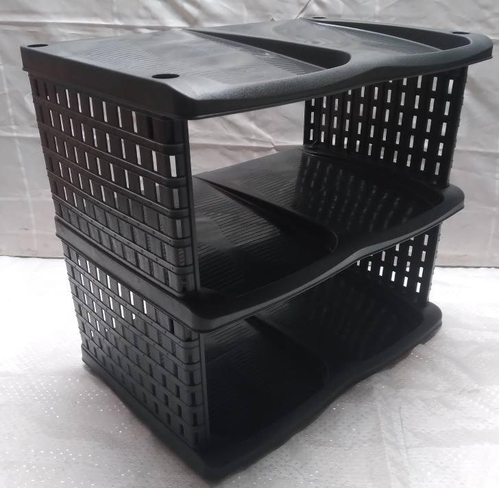 пластиковая обувная полка турецкого производителя (Elif) с боковыми соединениями под ротанг на 3 полки.в наличии полки на :2 яруса;3 яруса;4 яруса;5 ярусов;6 ярусов;7 ярусов и 8 ярусов.представлена в двух цветах:черный и коричневый.