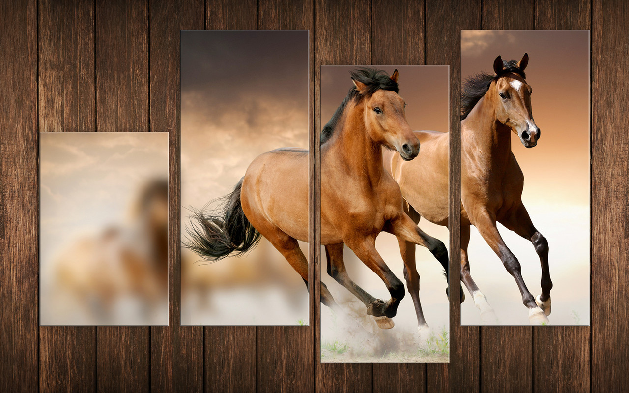 Модульна картина на полотні з 4-х частин "Коні"В наявності