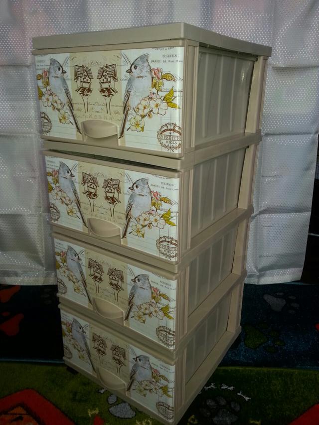 Комод еліф малюнок для зберігання одягу та інших потрібних речей виготовлений із пластику. Комод має чотири висувні місткі ящики, які легко відкриваються. Зручний і практичний комод допомагає зберігати лад.
